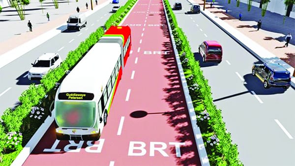 Le Bus Rapid Transit (BRT) de Douala est annoncé avec un coût total estimé à 335,3 milliards de FCFA, financé à hauteur de 261 milliards de FCFA par la banque mondiale ; 62,1 milliards de FCFA par des partenariats public-privé et 12,4 milliards de FCFA par l’État via la mairie. Le projet prévoit la construction de quatre lignes totalisant 28 km, avec 48 stations (environ une station tous les 500 mètres) et cinq gares (pôles d’échange multimodaux) : ancienne Direction des Douanes, Ndokoti, PK14, Carrefour Nelson Mandela et Yassa.