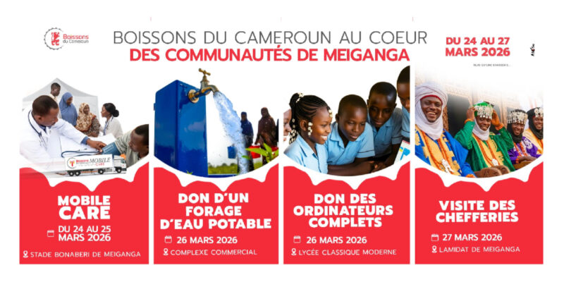 Du 24 au 27 mars 2026, trois jours d’intenses activités témoignant de l’implication de Boissons du Cameroun dans l’épanouissement des populations et spécifiquement au sein des communautés de Meiganga dans la région de l’Adamaoua. C’est dans le cadre de ses actions de Relations Publiques (Rp) et de Responsabilité Sociétale d’Entreprise (Rse), que Boissons du Cameroun ont mis en œuvre dans cette partie du pays une synergie d’actions sociales à fort impact visant à répondre de manière concrète et durable aux besoins prioritaires exprimés par les communautés locales relevant de la santé, de l’éducation et la cohésion sociale.
