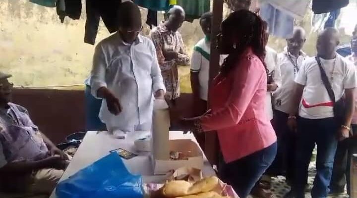 La délégation assiste au culte de ce dimanche à l’église de la prison. Des prières y seront élevées en faveur de la donatrice. À la fin de la prédication, l’aumônier de la prison, le Père Julien Nguessan va répartir en deux le don composé entre autres de plusieurs sacs de riz, de bidons d’huile (rouge et arachide), de pâtes alimentaires, du haricot, du maïs, des palettes de jus. Une partie restera dans le quartier des adultes, l’autre ira chez les mineurs. C’est justement dans le camp des mineurs que la trésorière régionale du Spic va couper son gâteau d’anniversaire, non sans inviter les mineurs en séjour ici à garder la foi en Dieu : « Nous sommes là pour vous dire que nous ne vous oublions pas, que le Seigneur vous aime. »