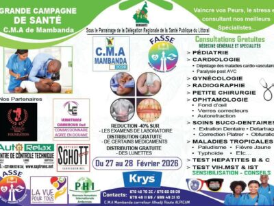 Le Centre médical administratif (CMA) de Mambanda lance une grande campagne gratuite de santé les 27 et 28 février 2026. Les organisateurs proposent ...